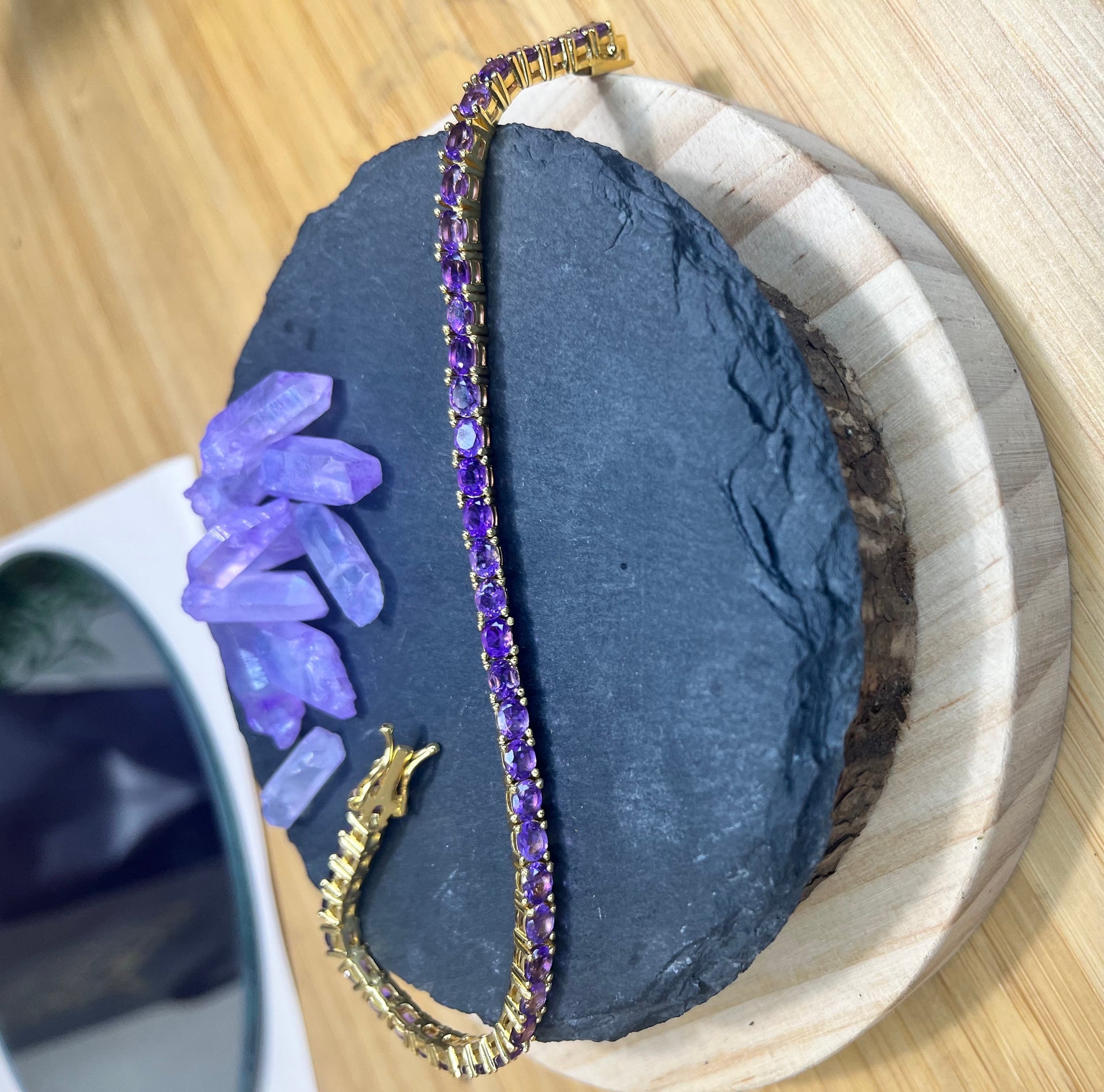 Step into timeless elegance with one of our natural royal purple Amethyst bracelet, finely set in lustrous silver. Each bracelet begins with a whimsical yet meticulous journey—where our devoted minions carefully scour through countless amethysts, hand-selecting only the most dazzling, perfectly hued stones. Their playful precision ensures every gem shines with the deep royal purple glow that has made amethyst a cherished birthstone for February.